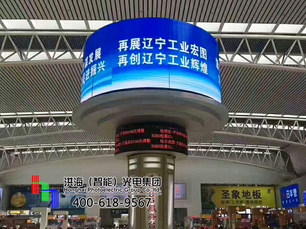 遼寧沈陽(yáng)北高鐵站LED旋轉(zhuǎn)升降圓柱屏