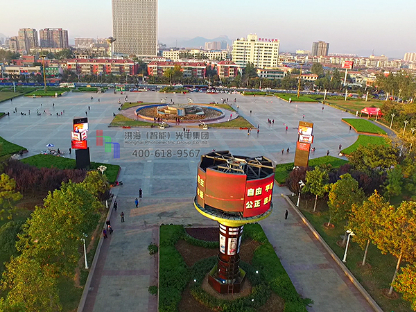 山東棗莊LED旋轉(zhuǎn)魔方柱升降圓柱屏
